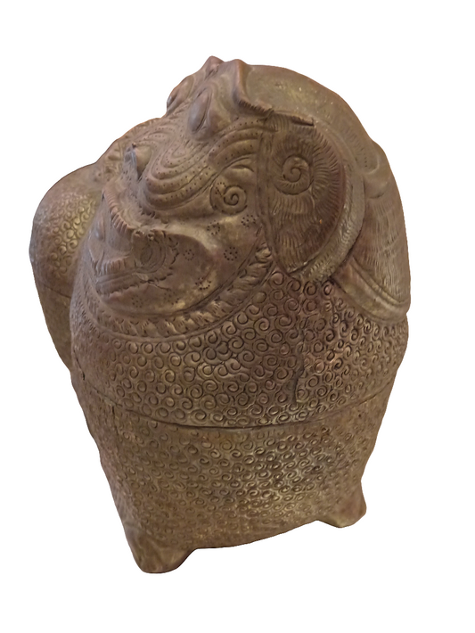 Figura di cane di Pho in ottone sbalzato Tibet del XIX secolo