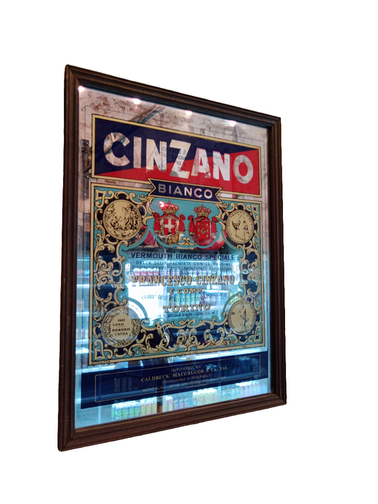 Vetrofania pubblicitaria vintage Cinzano bianco